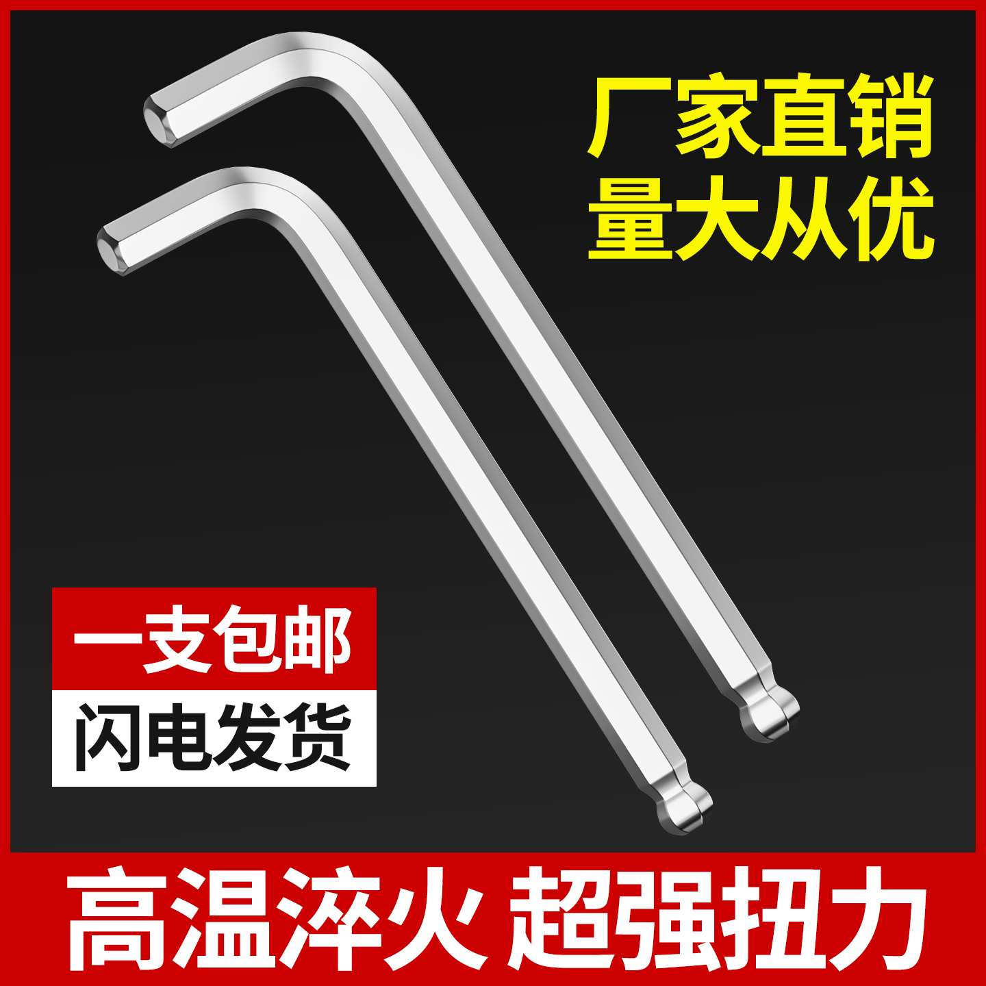 单支内六角扳手套装 特长自动球头六角匙L型6角螺丝刀六棱六方工具
