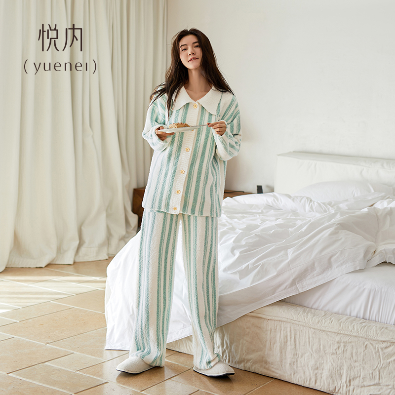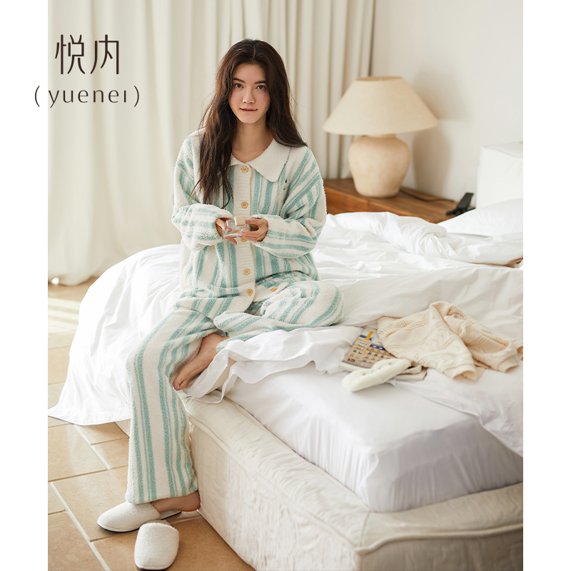 悦内半边绒睡衣女士冬季 加绒加厚珊瑚绒家居服可爱毛绒保暖 秋冬款