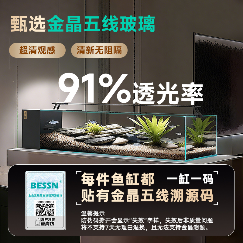 BESSN血脉觉醒宽境2025新款 侧滤鱼缸客厅桌面贝森金晶五线超白缸