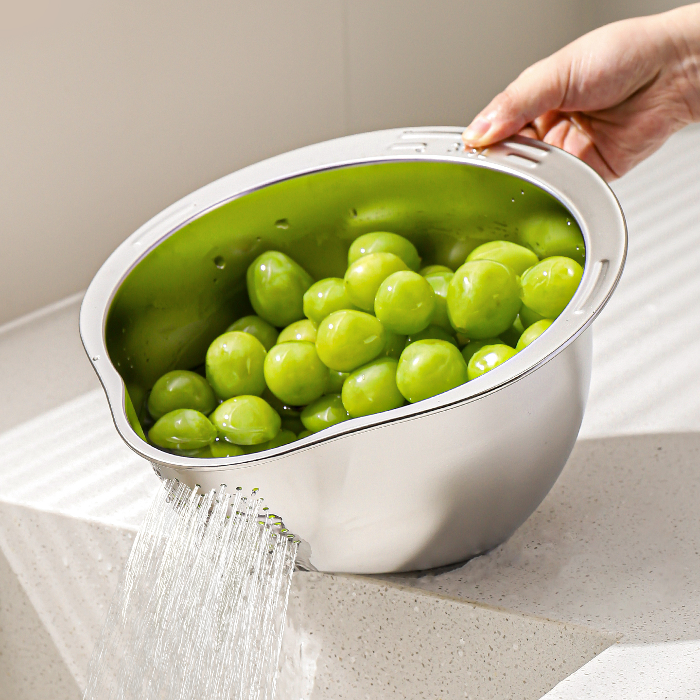 川岛屋316不锈钢洗菜盆沥水篮新款 滤水篮家用厨房洗米筛淘米神器