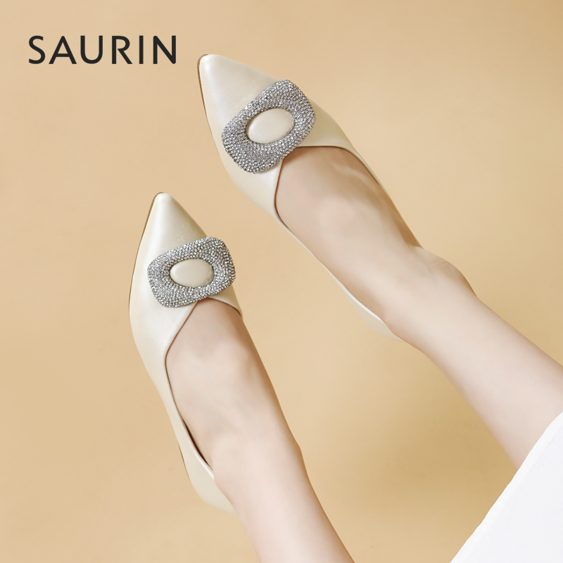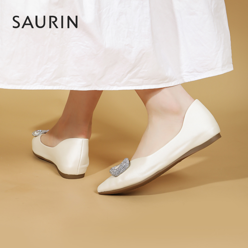 尖头水钻软皮平底浅口女鞋 索兰单鞋 法式 新款 25CN33177 女2025秋季
