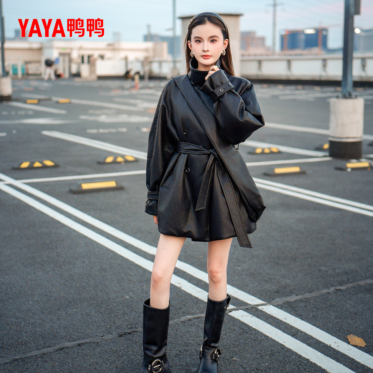 休闲宽松鸭绒厚外套C 连帽时尚 鸭鸭羽绒服女2025年秋冬新品 中长款