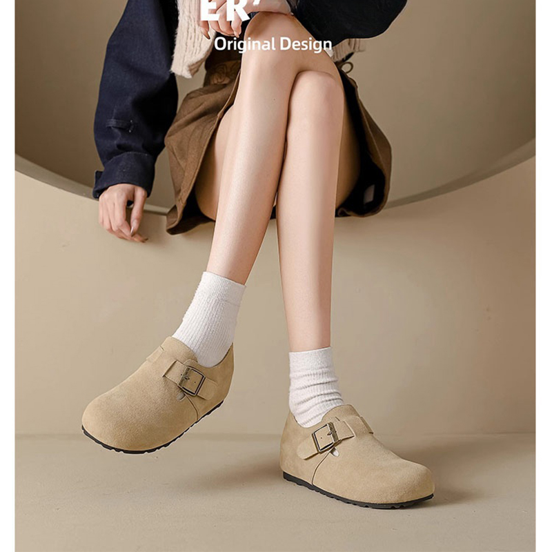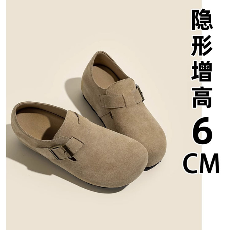一脚蹬复古博肯单鞋 新款 豆豆乐福 女2025秋季 厚底内增高6cm勃肯鞋