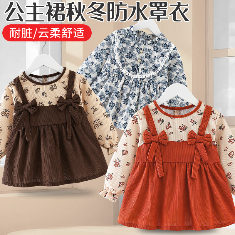 儿童罩衣宝宝围兜防水防脏吃饭外穿灯芯绒公主围裙子秋冬洋气女童