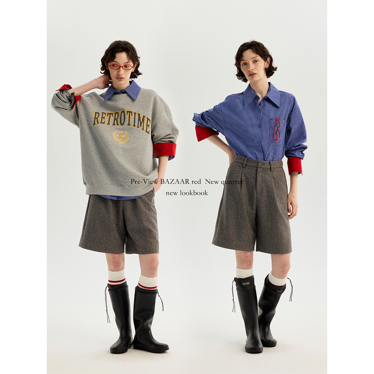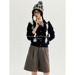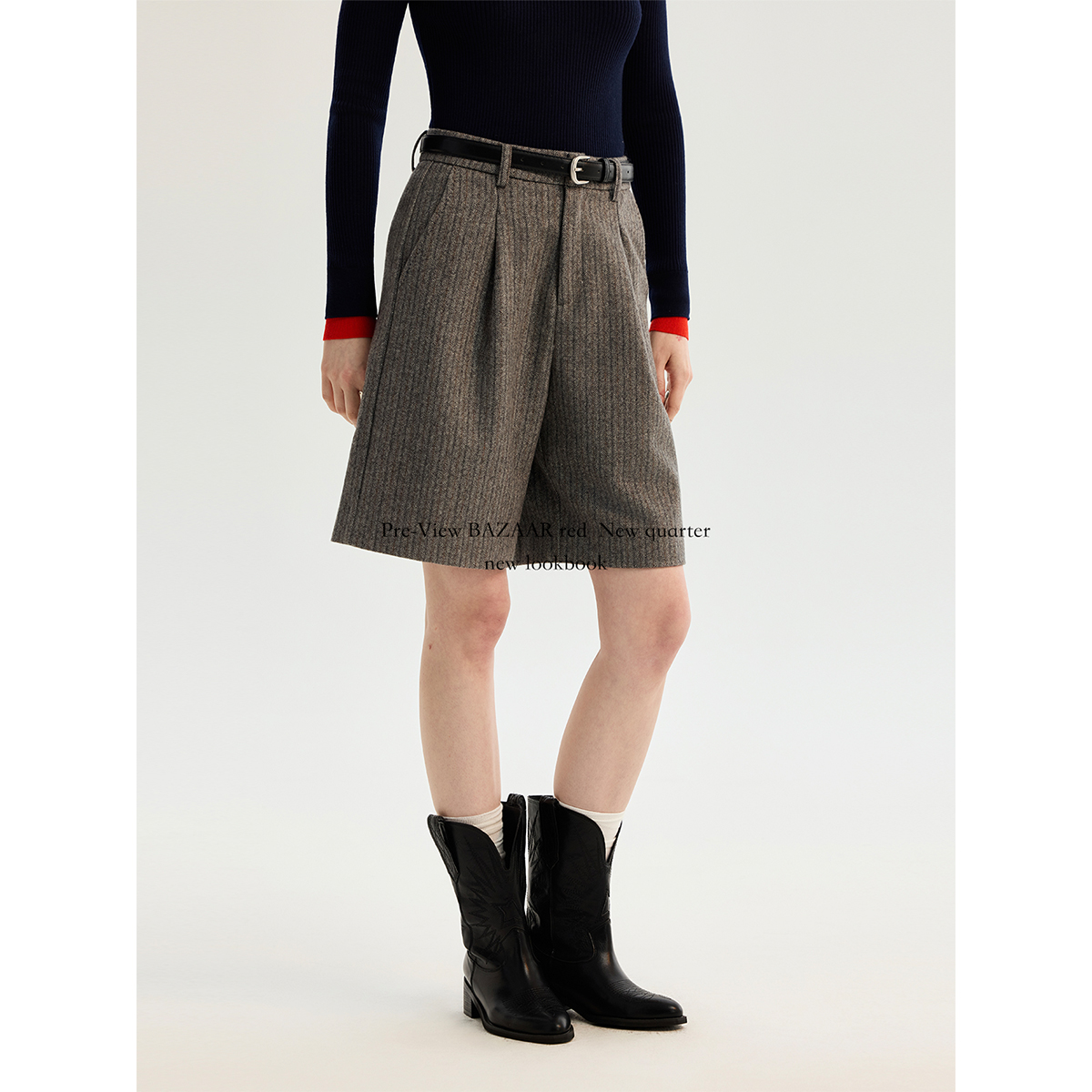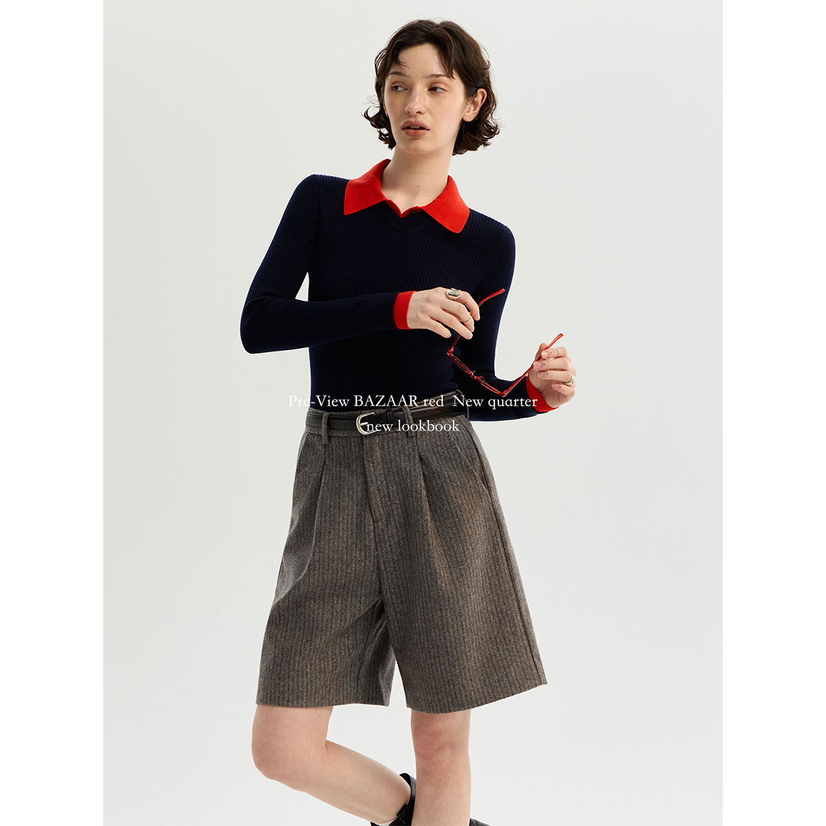 RED芭莎红 短裤 法式 休闲撞色条纹宽松廓形西装 女 复古时尚 BAZAAR