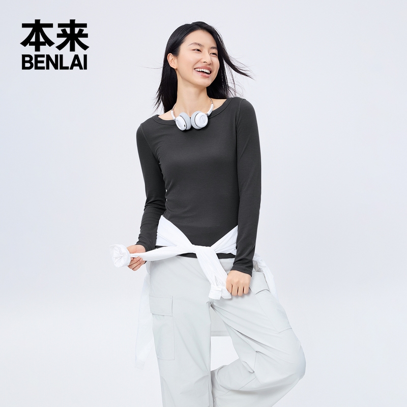 一字领修身 本来BENLAI女士抗菌长袖 新款 25秋季 上衣BNT450008 T恤衫