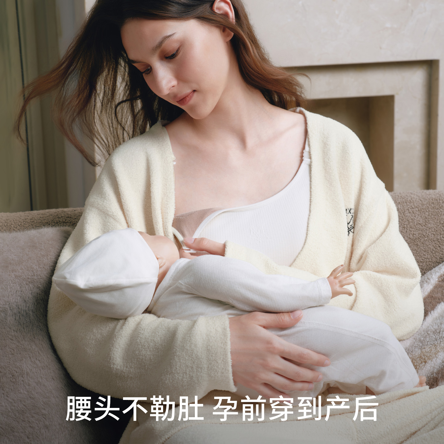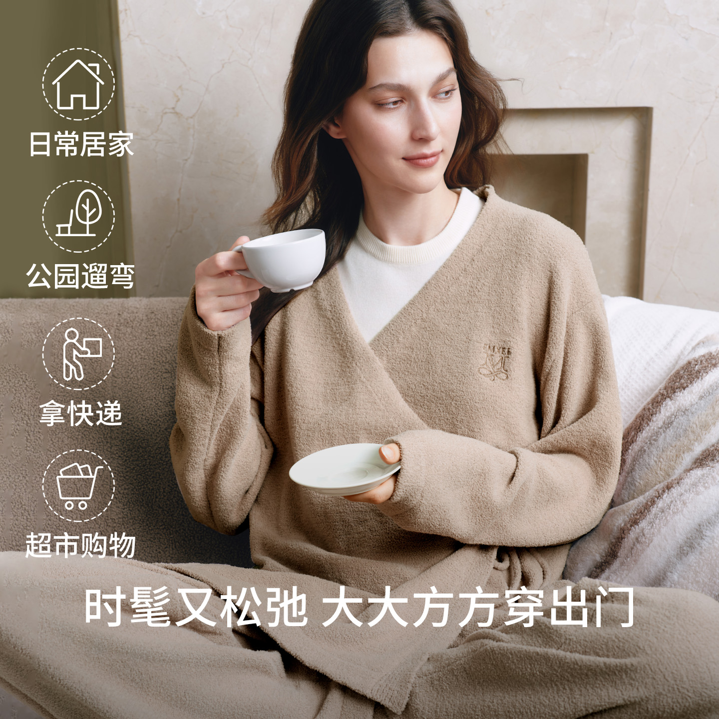 嫚熙秋冬季 纯色半边绒月子服孕妇哺乳睡衣产妇产后保暖家居服套装