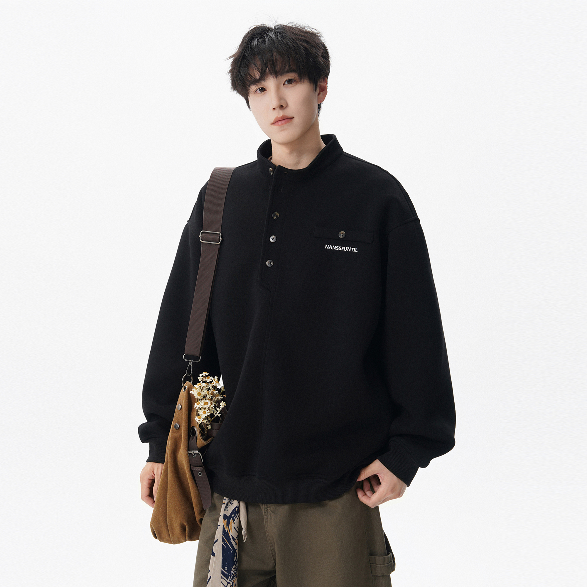 青少年宽松休闲男生上衣 2025新款 回力假两件亨利领卫衣男士 春秋季