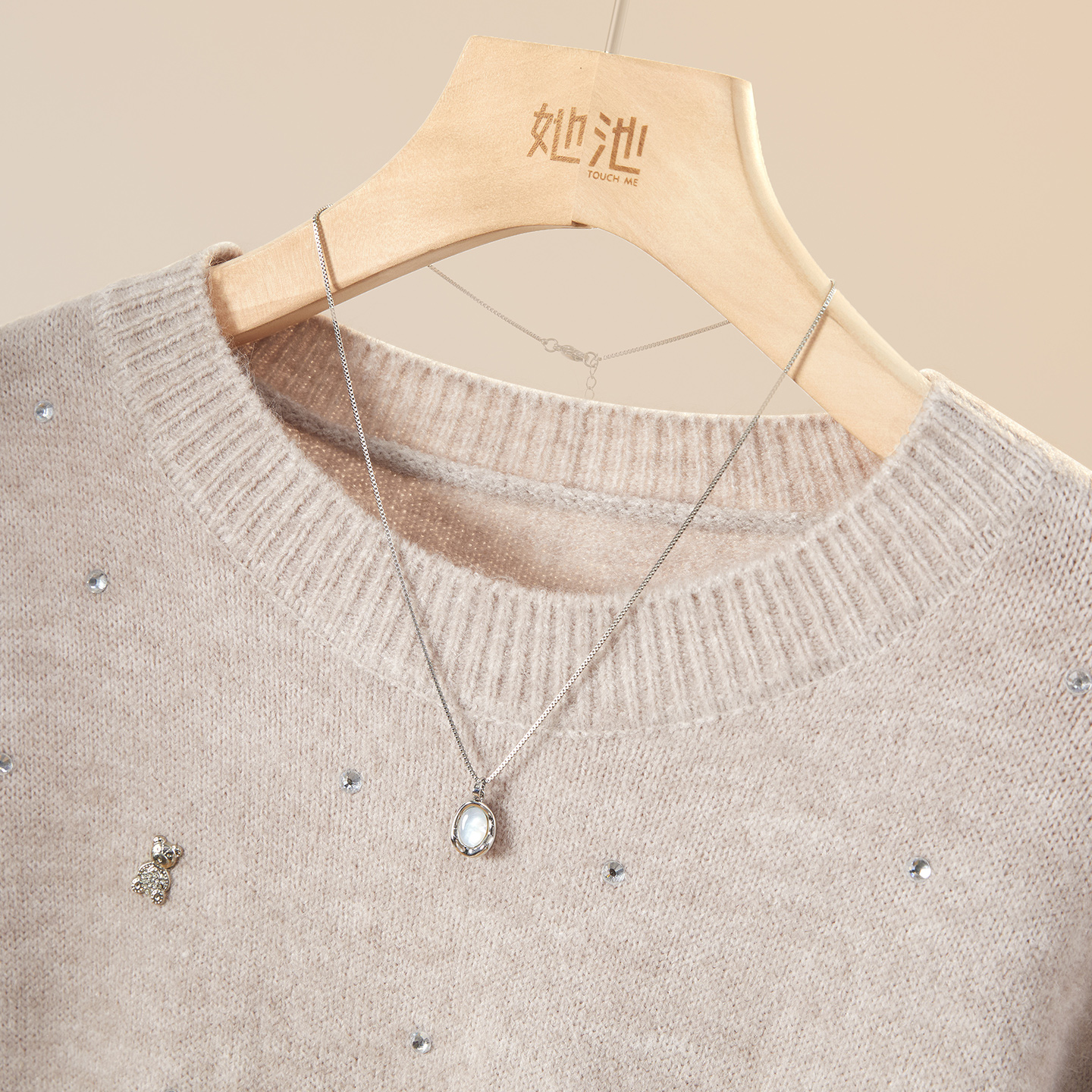 甜美温柔风圆领套头宽松款 她池烫钻针织衫 女装 新款 上衣 2025秋装