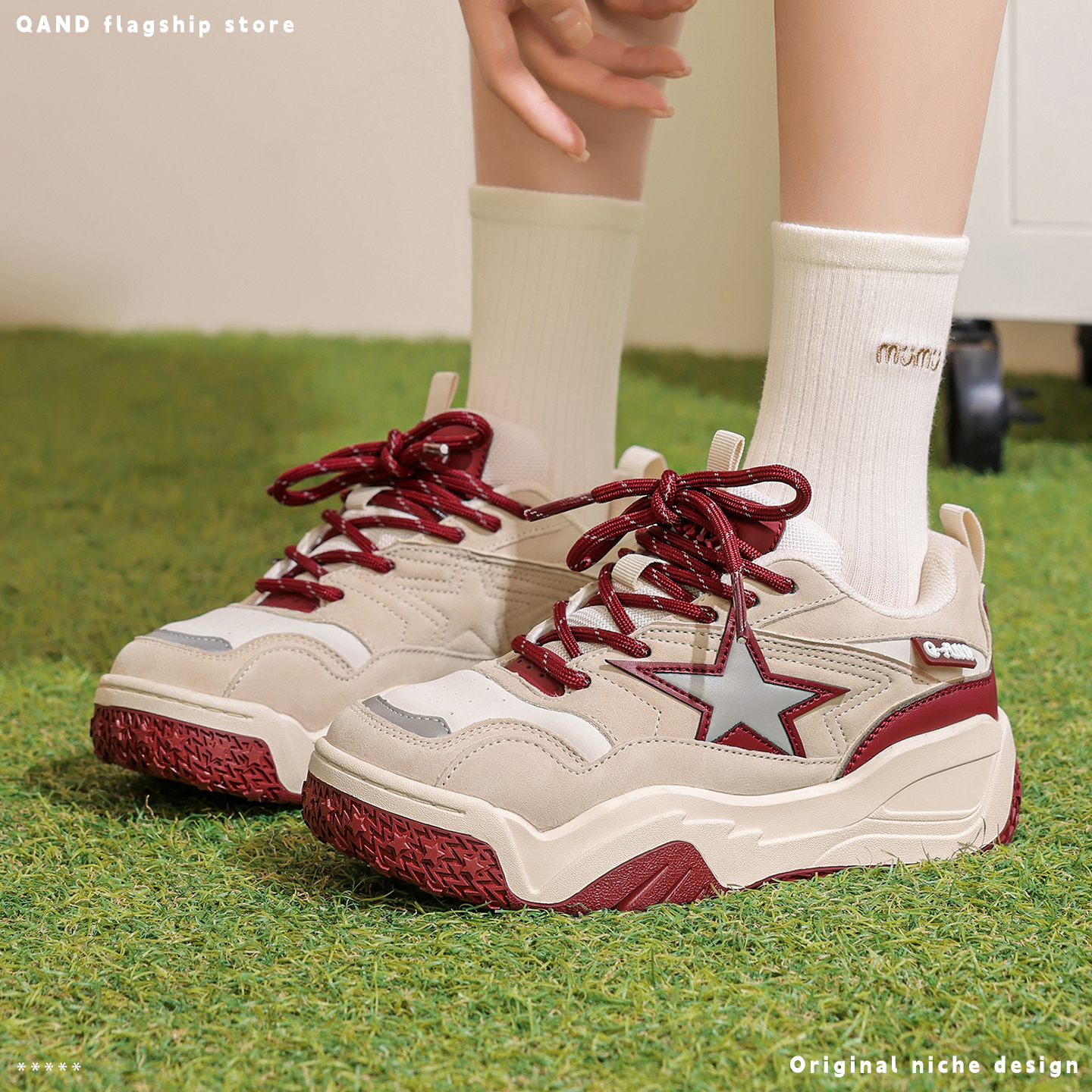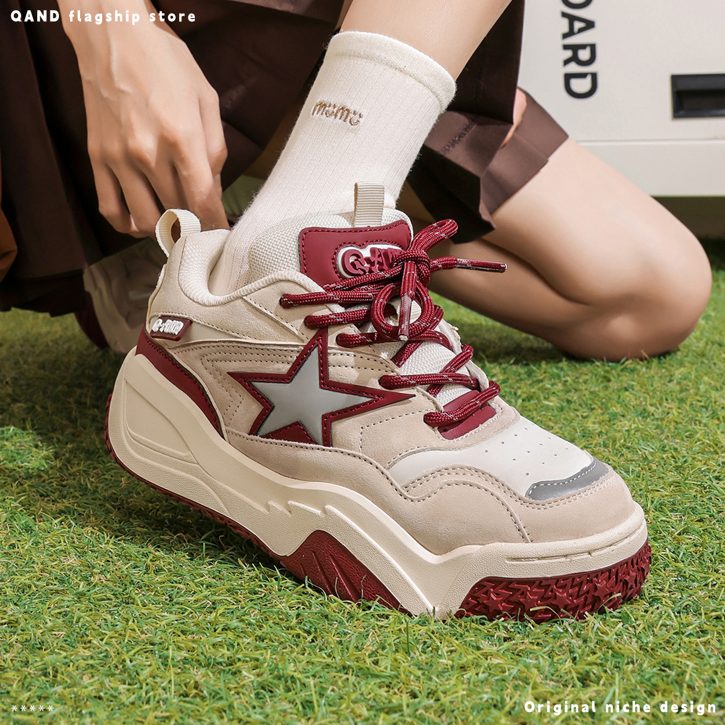 新品 2025年秋季 皮面红色百搭休闲 学生厚底增高运动板鞋 乔丹女款