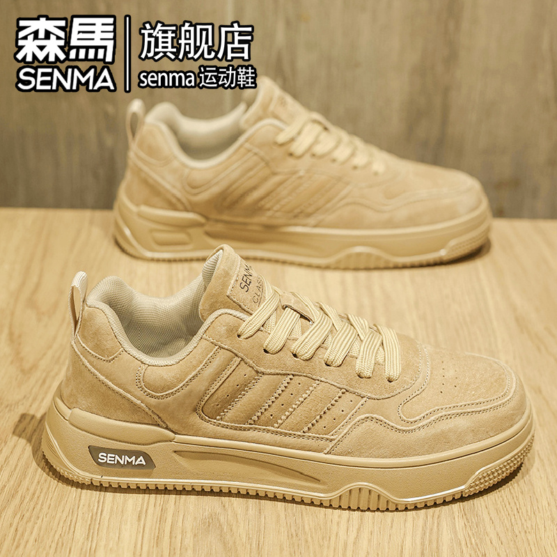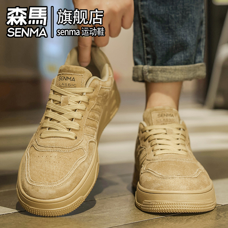 软底运动内增高小麦色潮鞋 森马男鞋 男士 百搭休闲厚底真皮板鞋 秋季