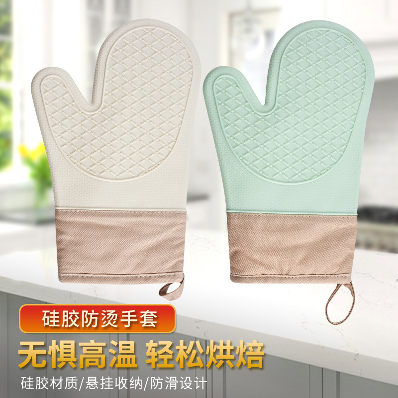 硅胶隔热手套卡奇色布防烫菱格耐高温烤箱微波炉手套厨房烘培工具