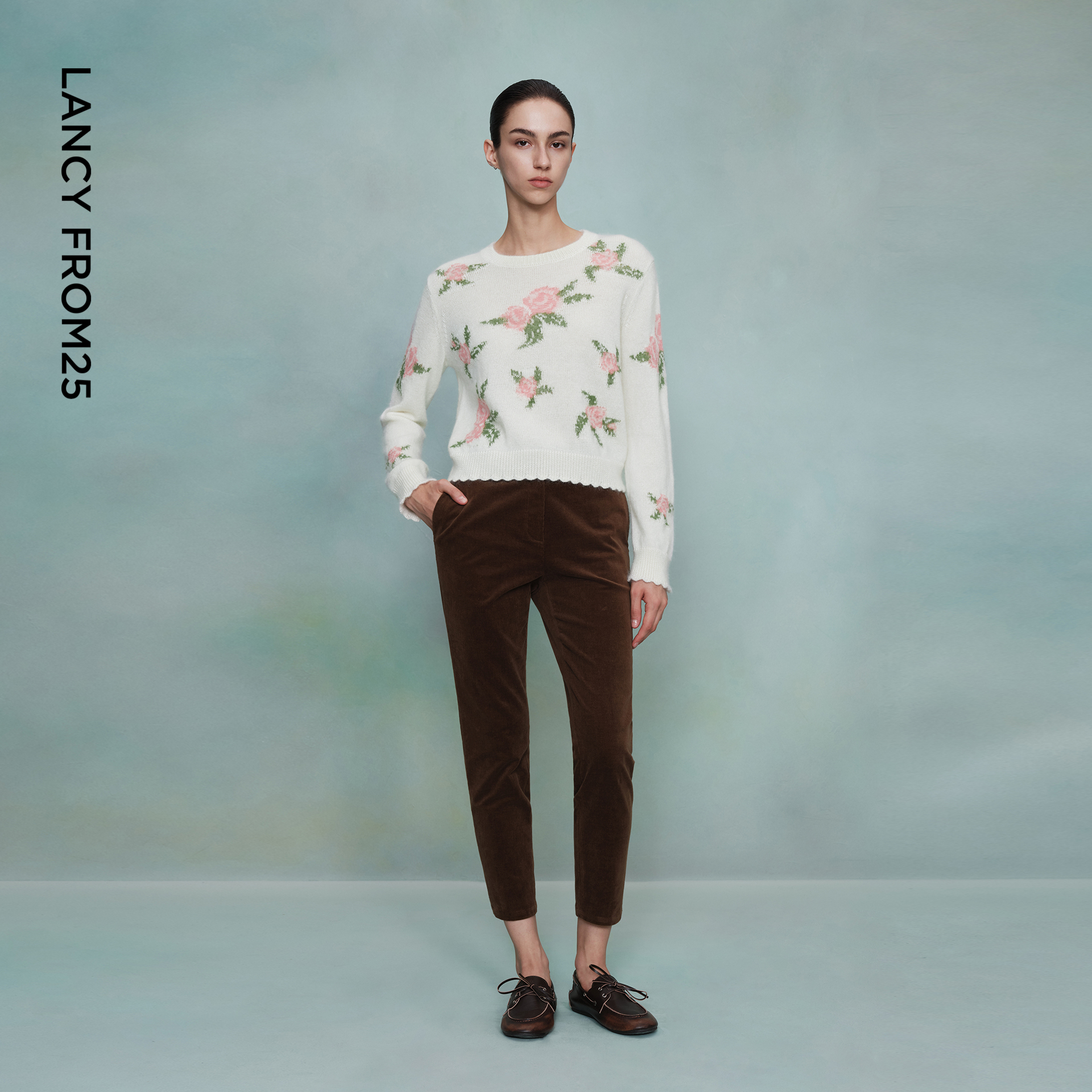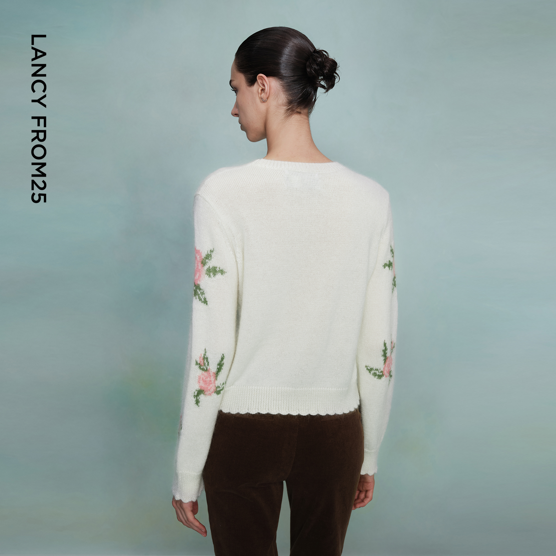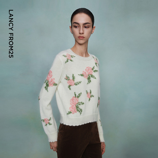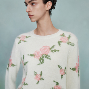 宽松短款 朗姿圆领提花毛针织衫 简约通勤风毛衣女 艺术家联名