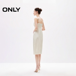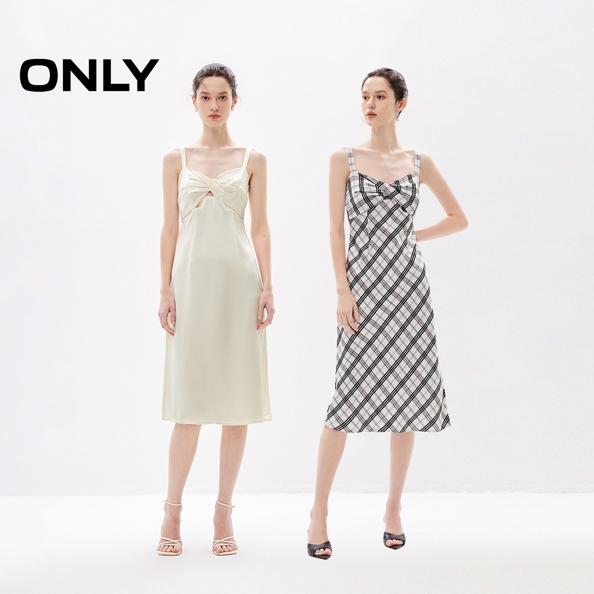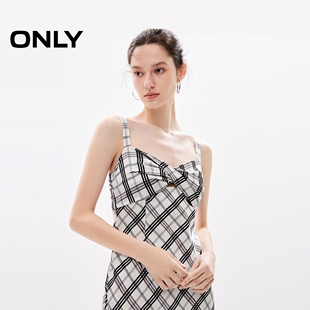 饰显瘦飘逸时髦格纹吊带中长裙连衣裙女 荷叶边装 ONLY2025夏季 新款