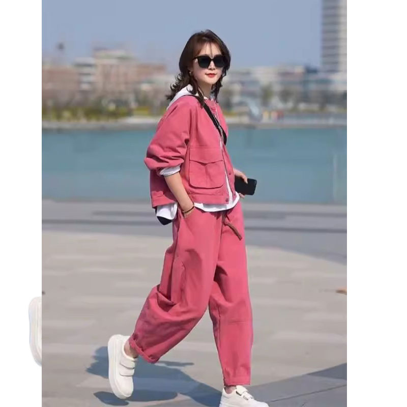 休闲套装 新款 女百搭开衫 T恤 宽松显瘦减龄三件套 大码 哈伦裤 秋季