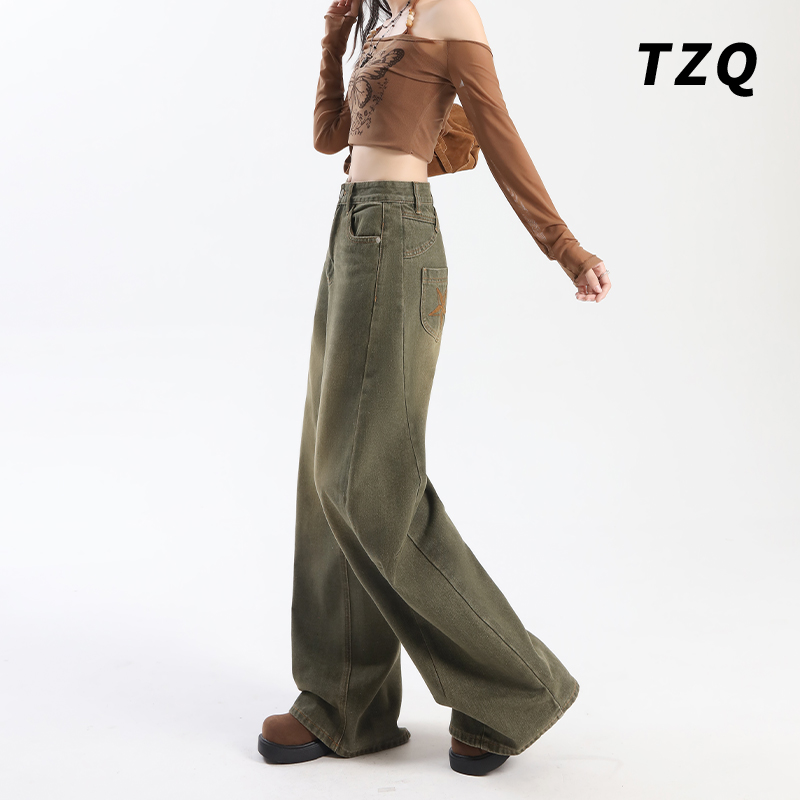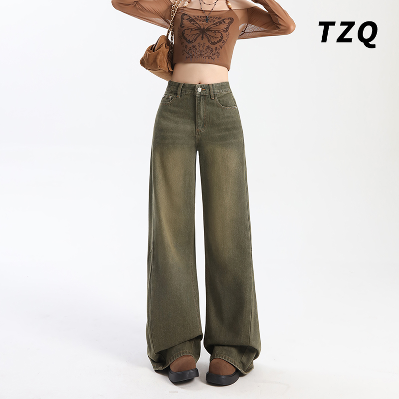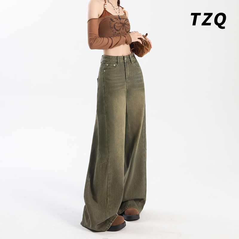 做旧阔腿牛仔裤 高腰宽松显瘦垂感拖地裤 女款 2025年新款 子 爆款 美式