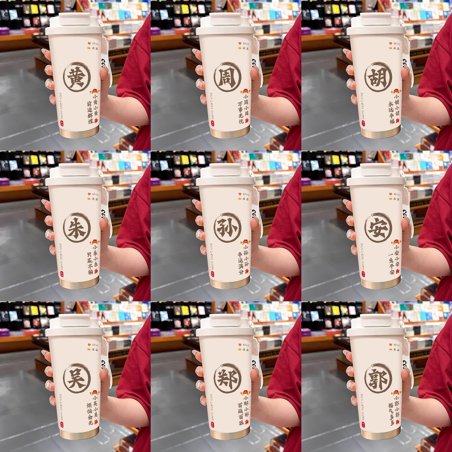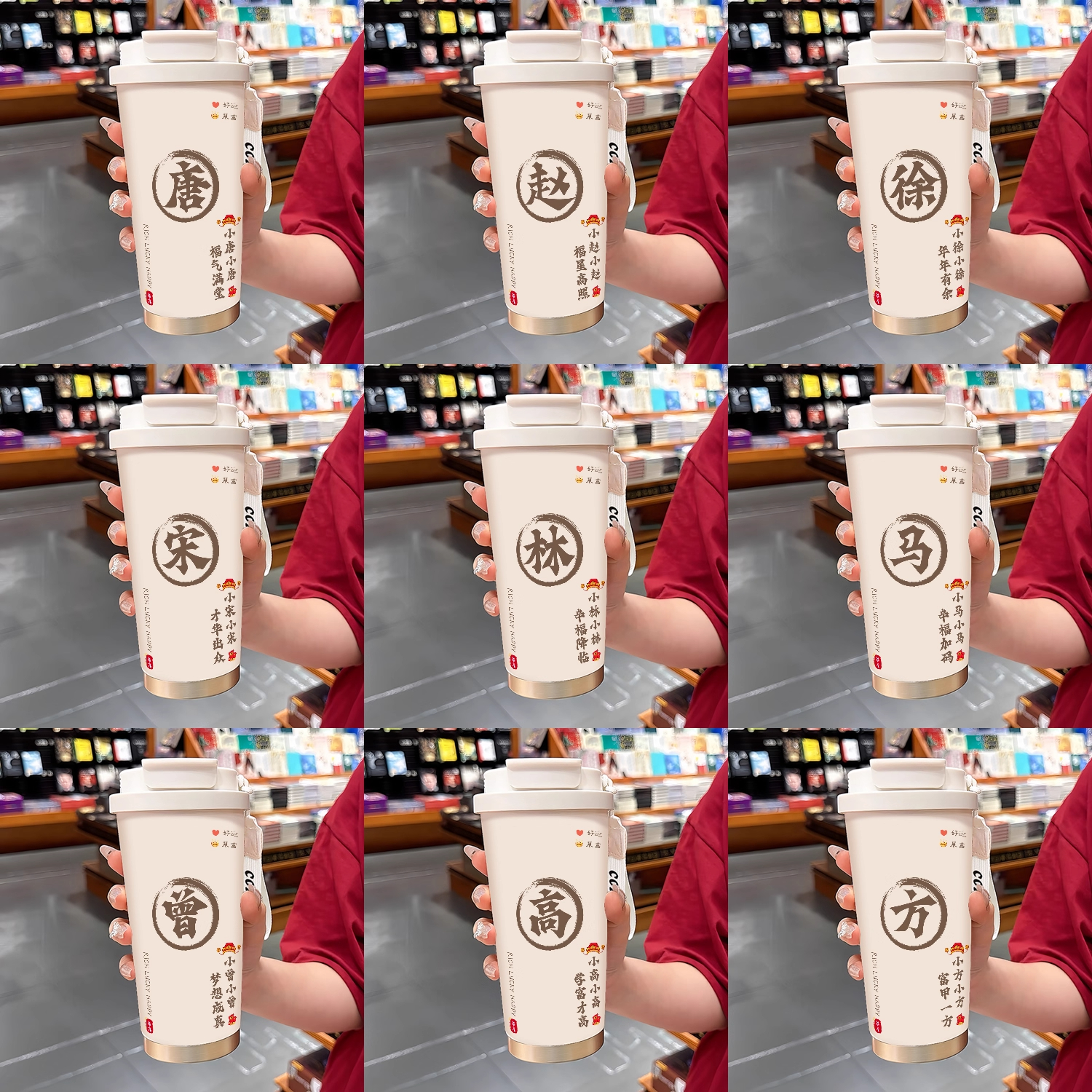 ithaca百家姓保温杯316陶瓷不锈钢大容量吸管水杯子高颜值咖啡杯