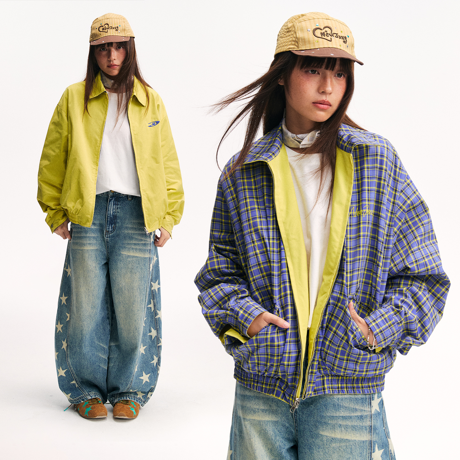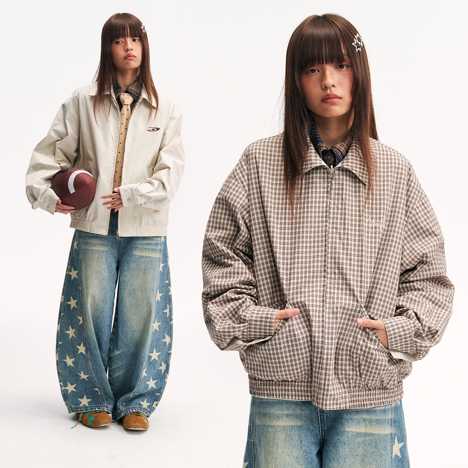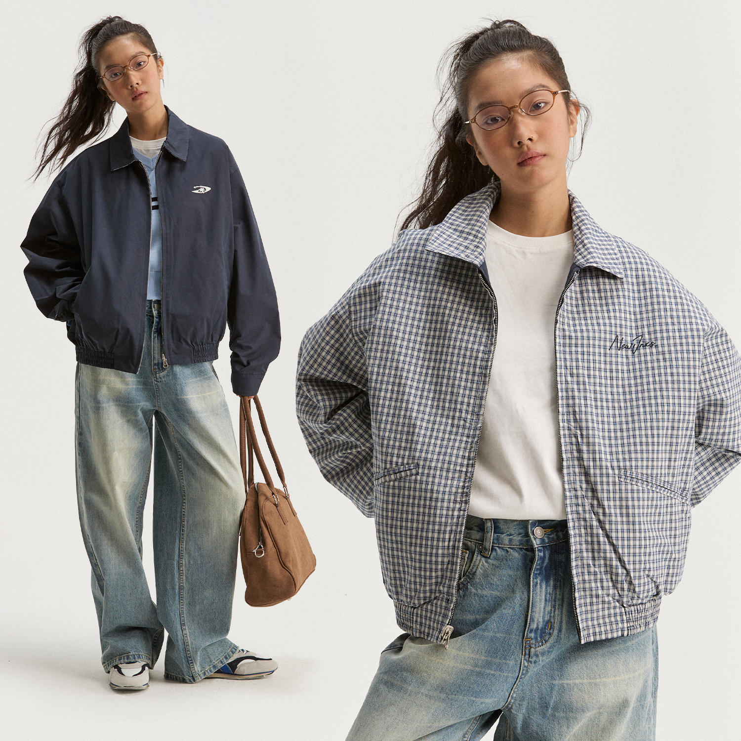 复古 潮流刺绣撞色夹克美式 森马外套女连帽插肩袖 宽松上衣女士秋季