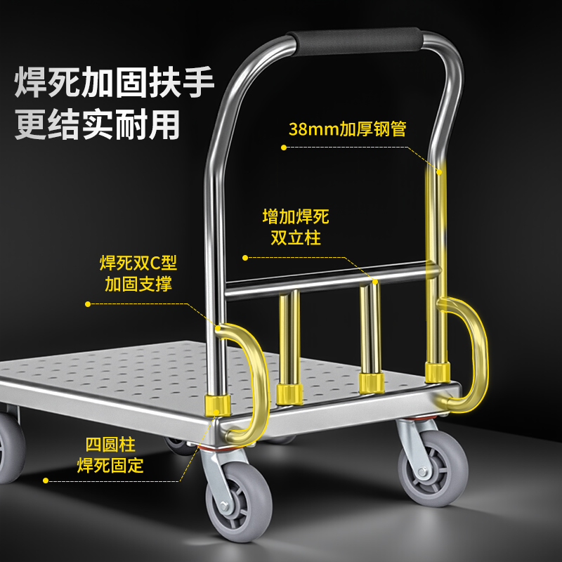 不锈钢平板车加厚手推车四轮平板车小推车搬运车推货车拖车送货车