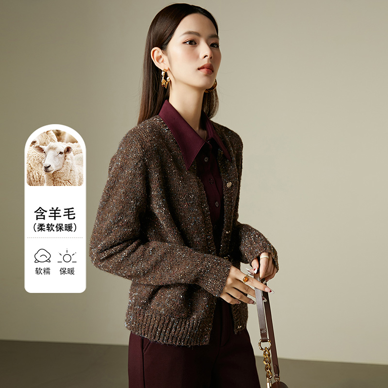 不含腰带 外套女 简约毛衣气质含羊毛针织衫 晚白2025年秋冬新款