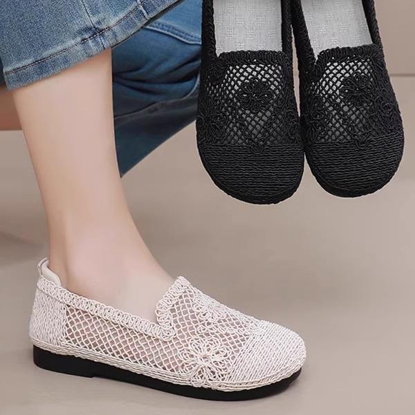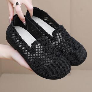 软底镂空网面豆豆鞋 女透气妈妈凉鞋 平底一脚蹬百搭 老北京布鞋 新款