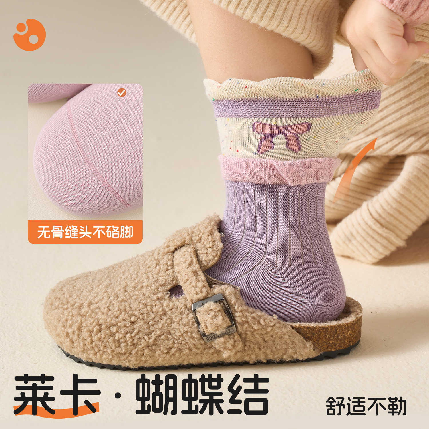 女童袜子春秋款 中筒袜小女孩宝宝大童卡通无骨袜 纯棉a类儿童秋季