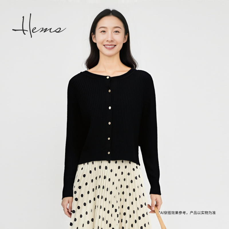 D4929D4R 圆领羊毛开衫 海尔曼斯25早秋新品 高智感通勤系列简约经典
