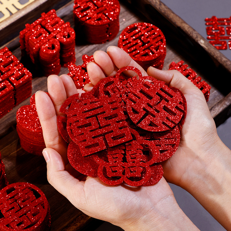 结婚专用手抛喜字婚房布置礼盒装 饰小囍字订婚喜字帖结婚用品大全