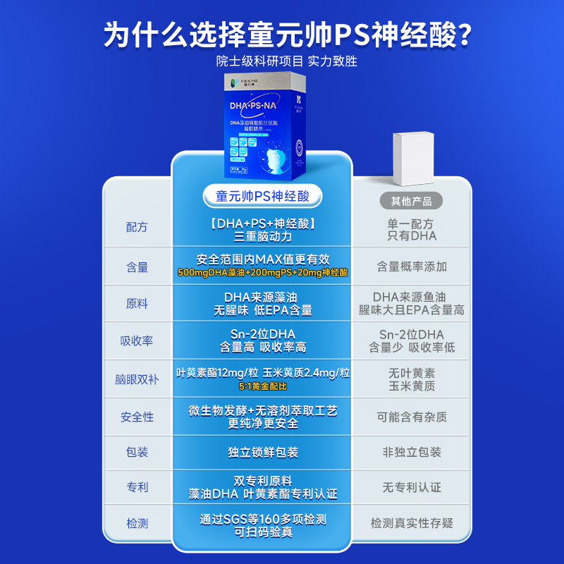 帅DHA藻油PS神经酸学生专用专注力记忆官方正品 童元 预售
