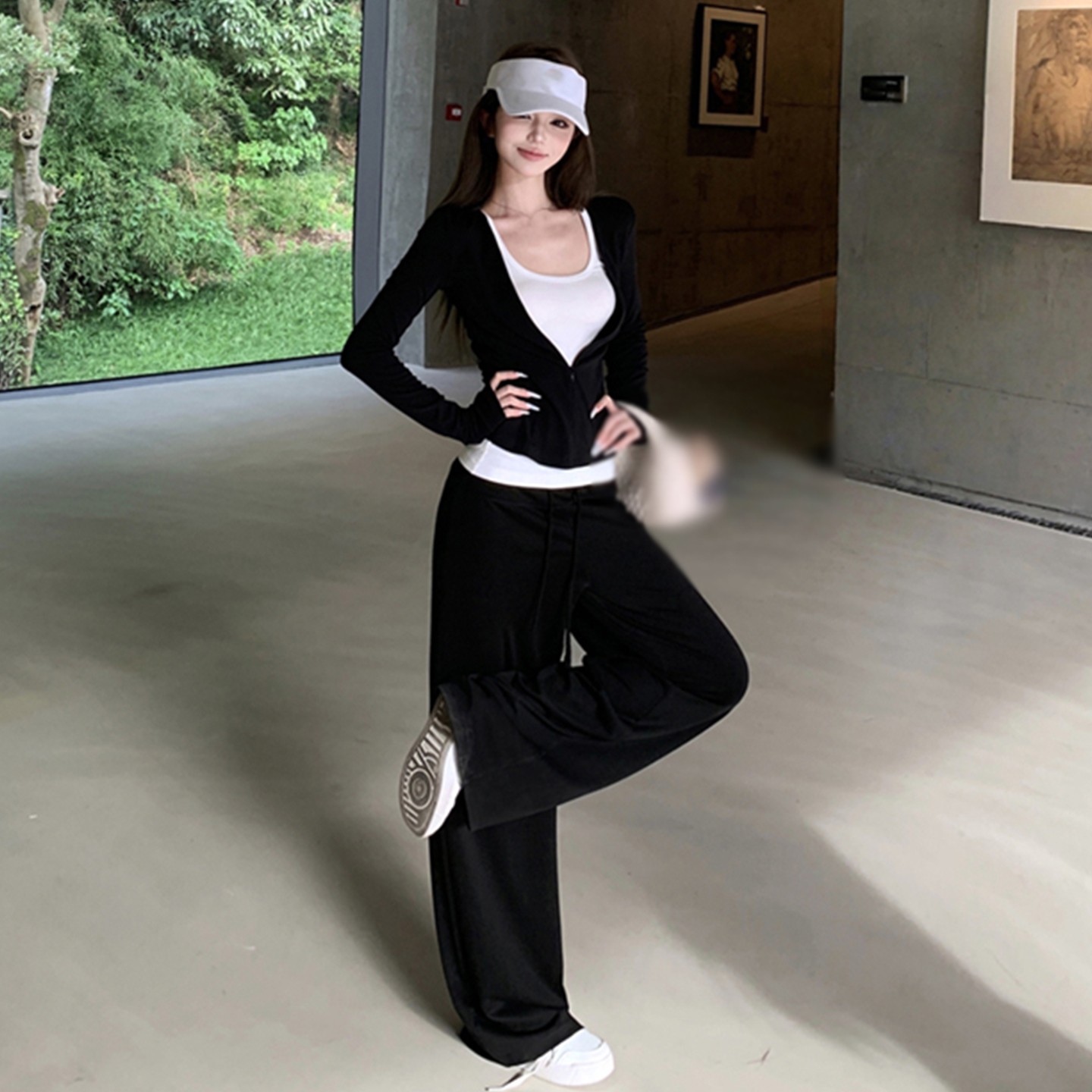 套装 早秋新款 吊带直筒长裤 休闲设计感拉链t恤外套女修身 女 时尚