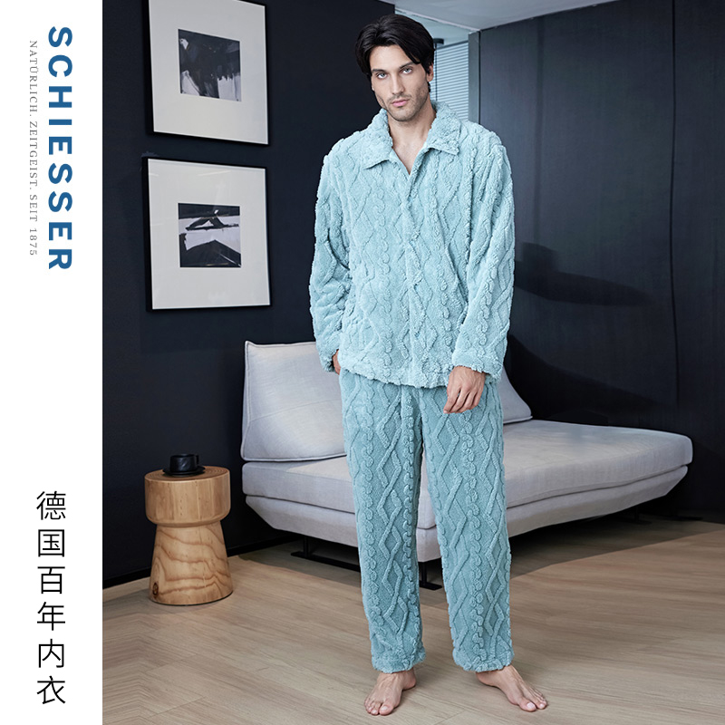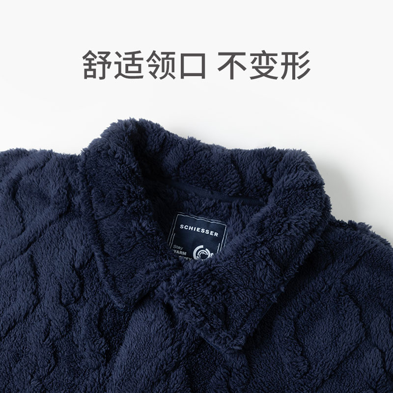 SCHIESSER舒雅男士 22002H 提花舒棉绒加绒加厚翻领睡衣家居服套装