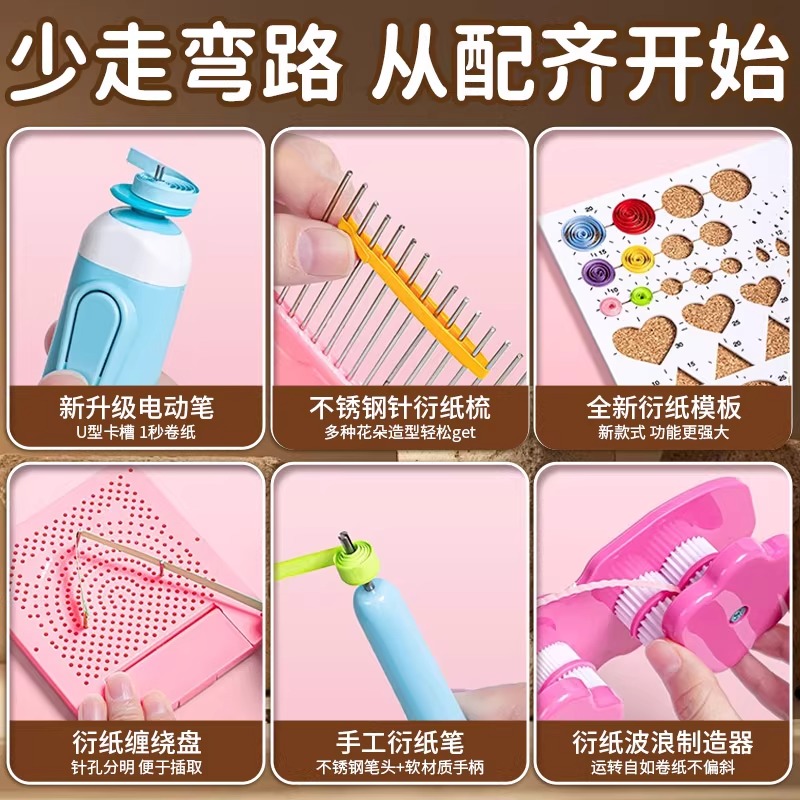 手工折纸手工衍纸套装 女孩幼儿园工具剪纸DIY材料包衍纸画艺术作品儿童彩烙艺术纸彩色卡纸衍纸相框模板书签