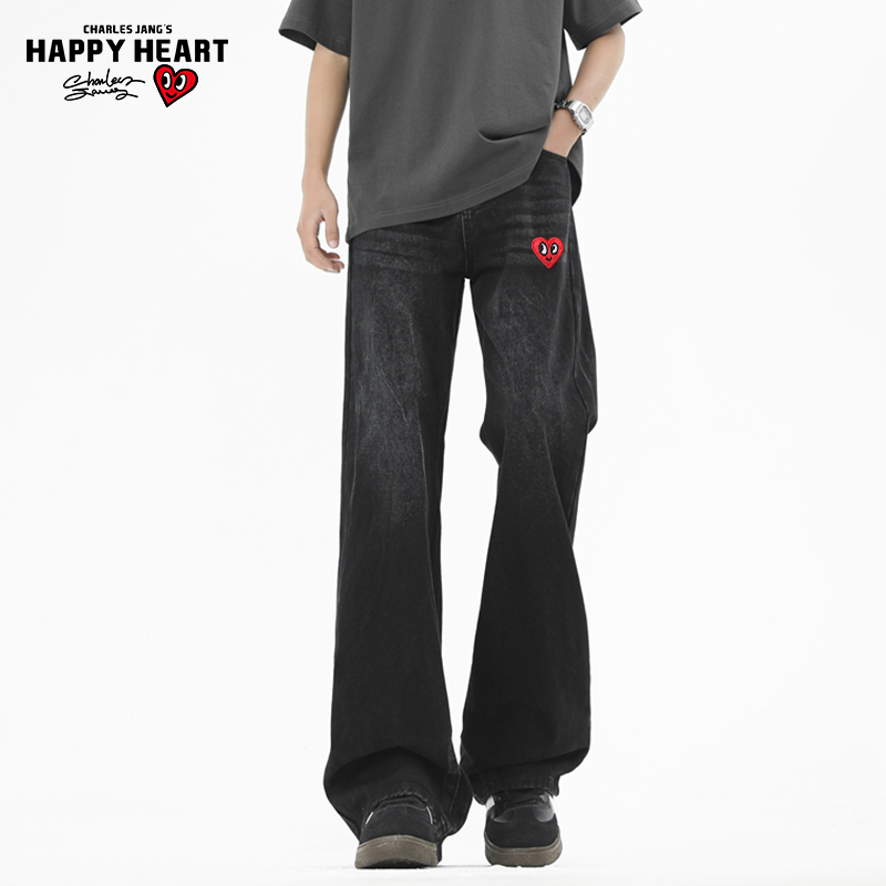 美式 长裤 高街微喇vibe牛仔裤 直筒微喇叭窄版 男春秋季 查尔斯桃心