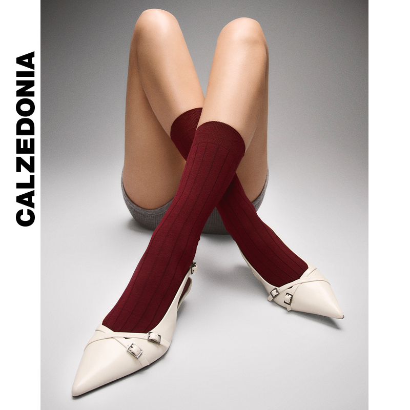 CALZEDONIA卡泽意袜25秋冬新女士柔软舒适宽罗纹短袜中筒袜DC0580