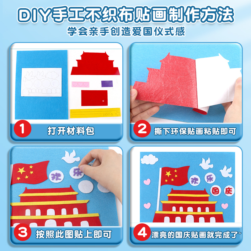 国庆节手工diy材料包爱国主题不织布粘贴画小学生幼儿童创意玩具