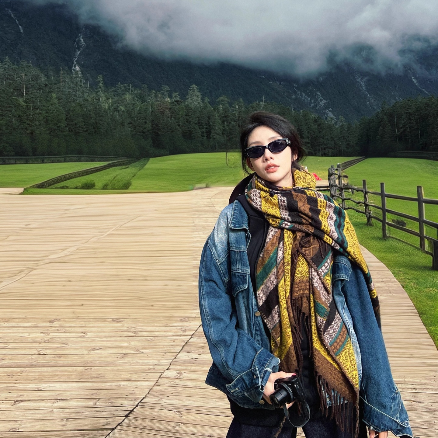 民族风外搭披肩女大西北新疆云南旅游穿搭围巾高级感斗篷披风秋冬