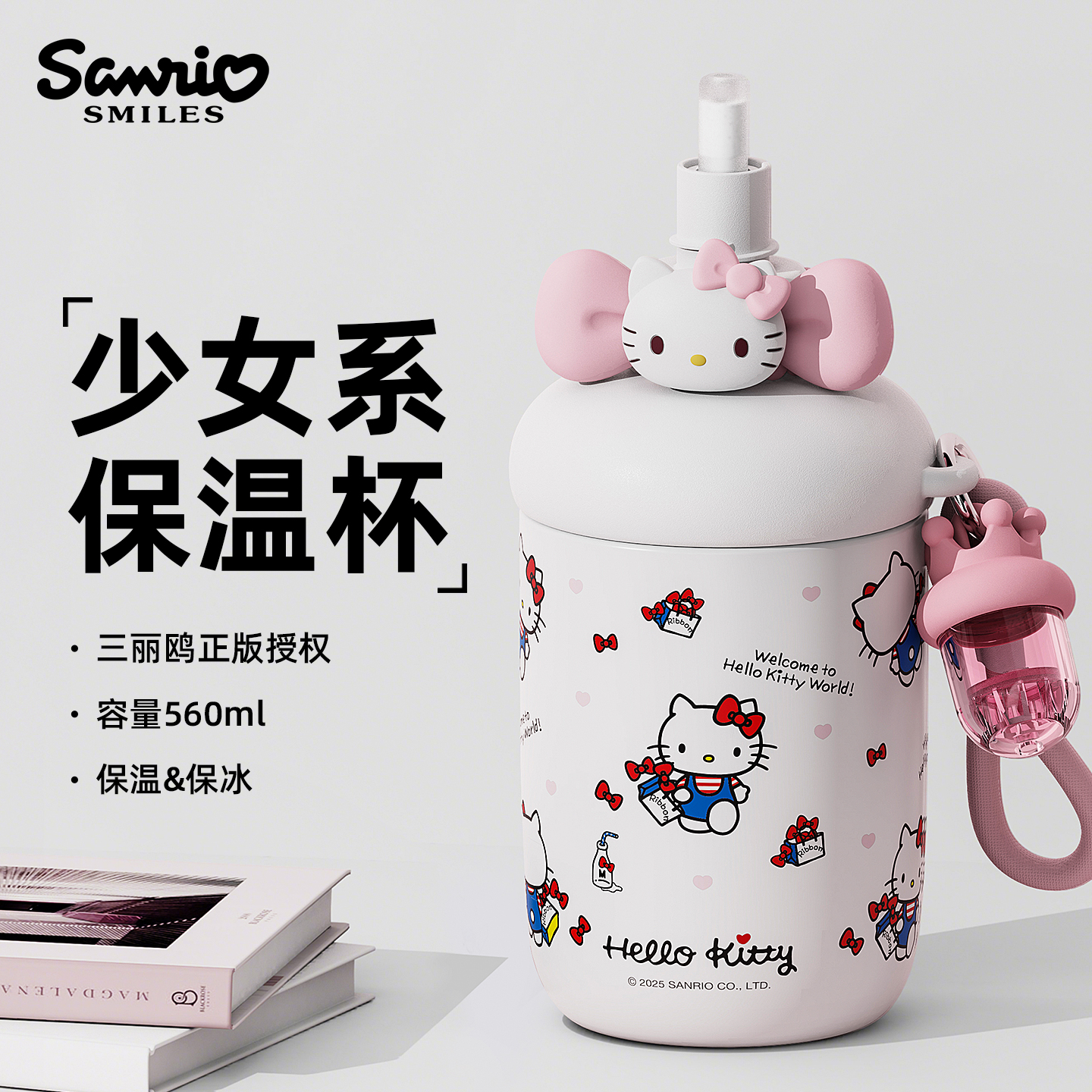 HelloKitty保温杯女生士高颜值2025新款 可爱带吸管咖啡随行水杯子