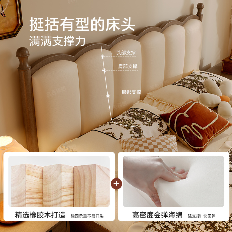 政府补贴蓝色理想中古风实木床法式 真皮面包1.8m复古大气双人床