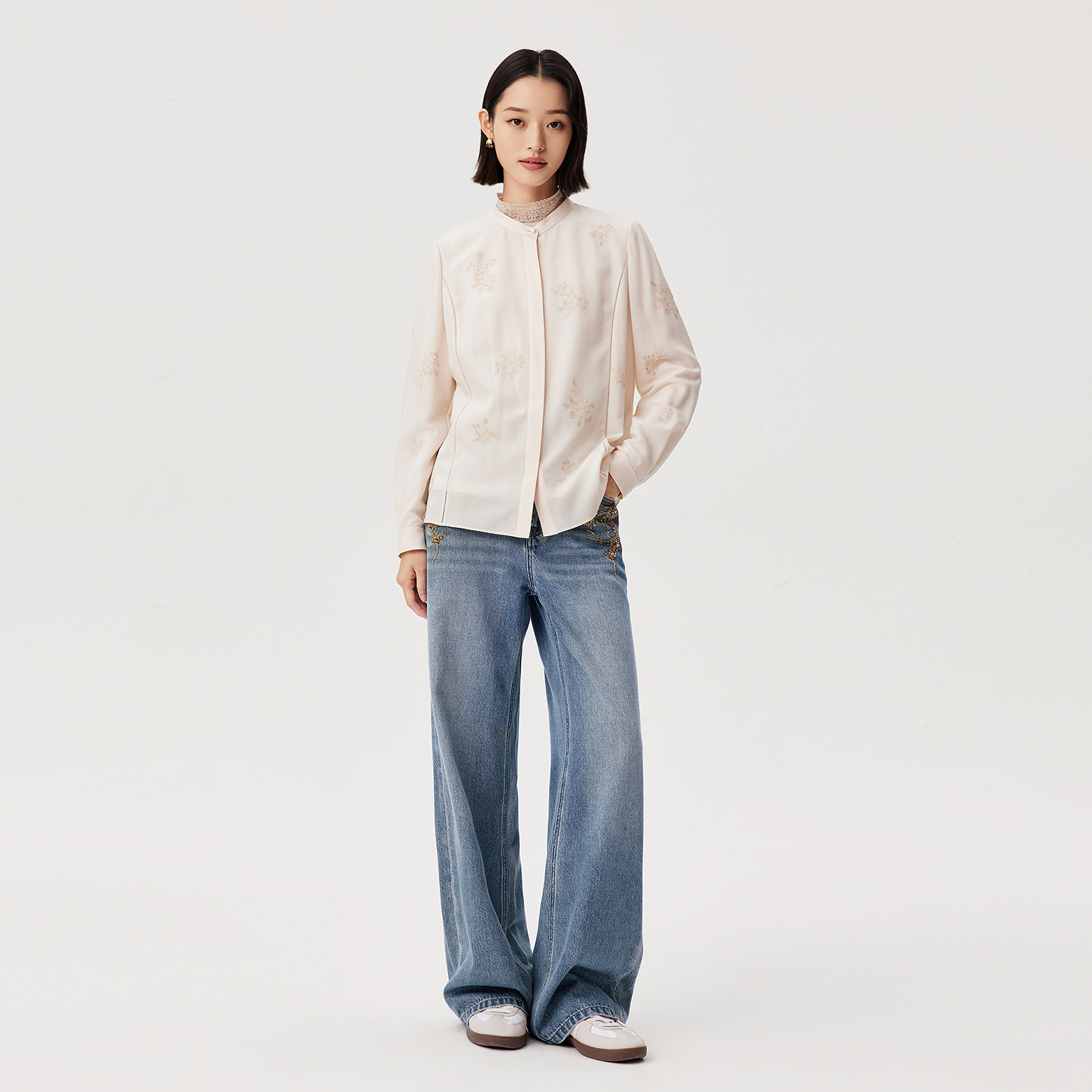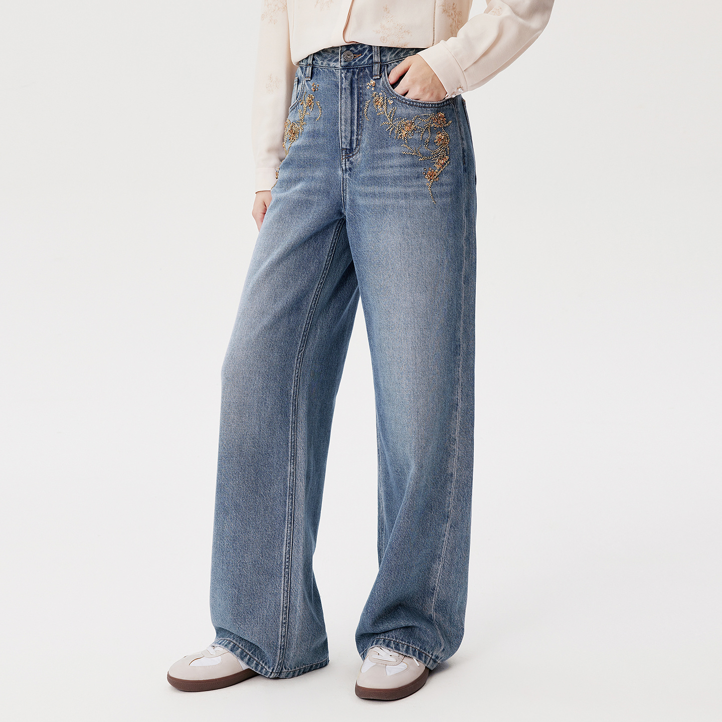 女冬季 复古垂坠渐变直筒阔腿牛仔裤 40933287 建模裤 艾诺丝雅诗