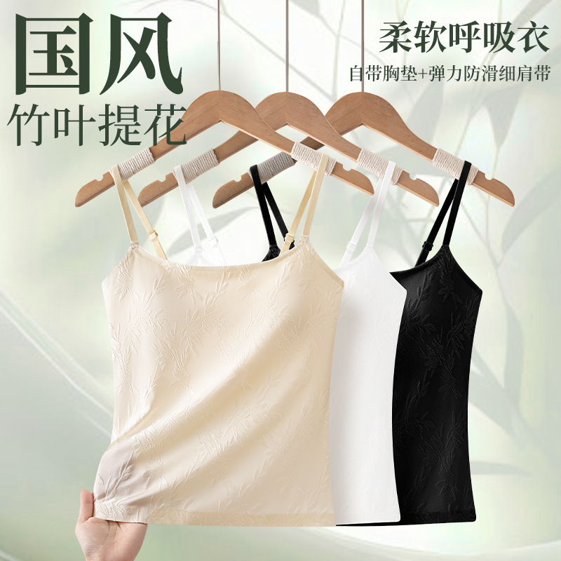 新中式 显瘦打底带胸垫内搭背心女 吊带国风提花可外穿气质修身