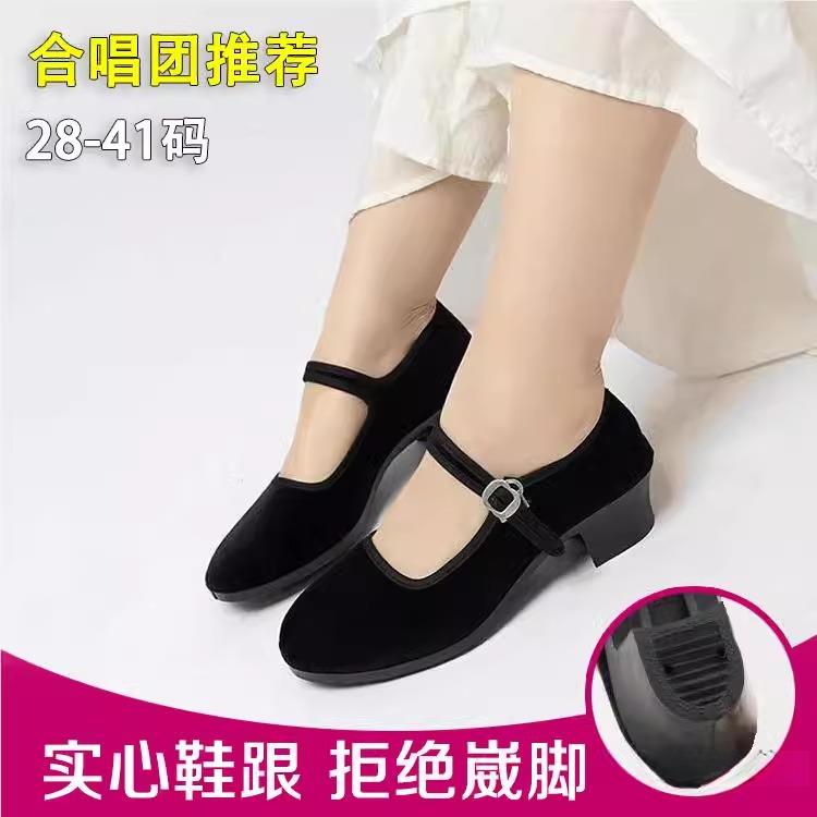 考级专用女童老北京布鞋 2025新款 女藏族黑色高跟舞鞋 民族舞蹈鞋