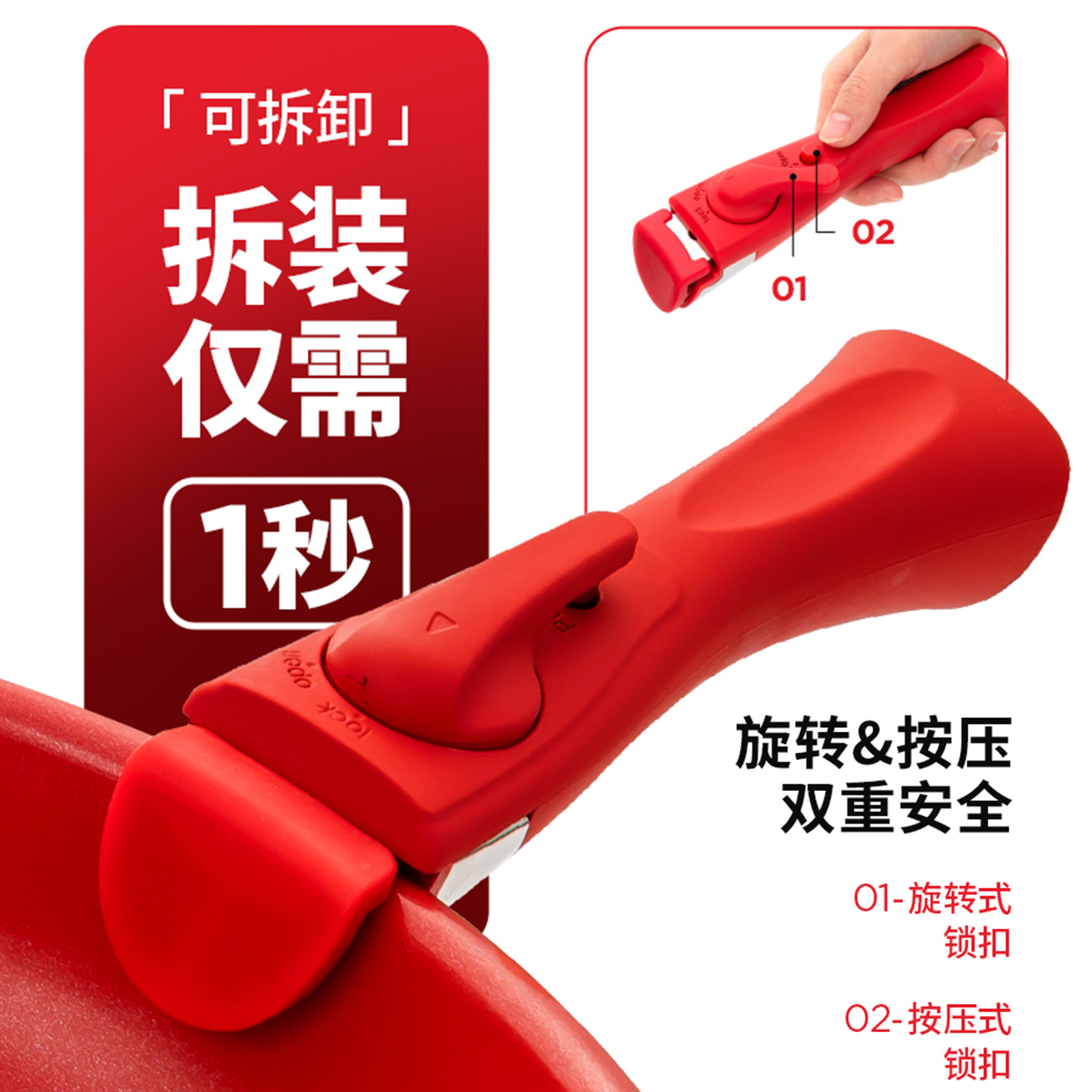 红厨陶瓷岩健康可拆卸手柄叠叠锅百变炒锅无化学涂层锅组套装 家用