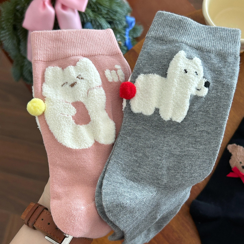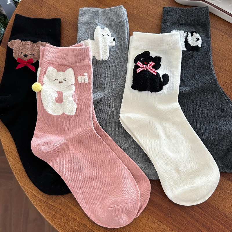 白色黑色 纯棉防臭ins潮中筒袜春秋款 可爱卡通袜子女2025新款 爆款