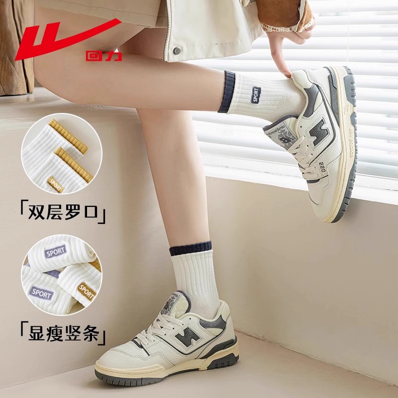 中筒袜7A抗菌运动袜白色袜子 款 回力100%正品 新疆棉袜子女春秋四季