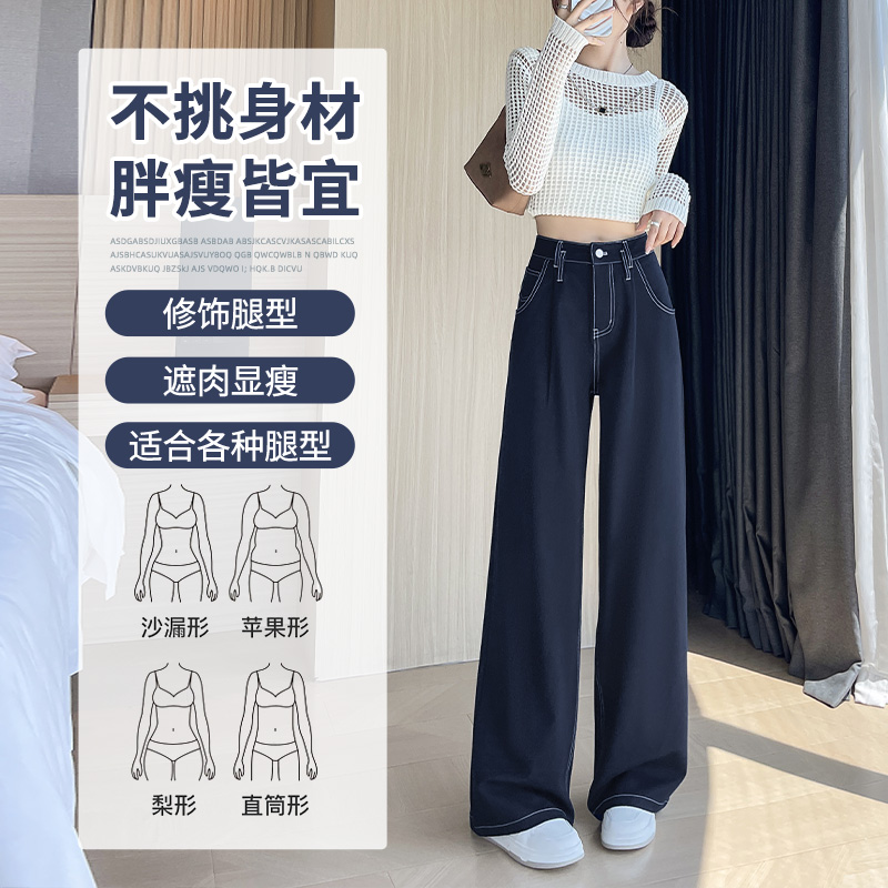 女2025年新款 子女装 秋季 复古宽松直筒阔腿裤 504791 时尚 三福牛仔裤