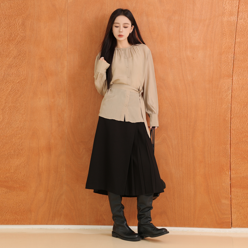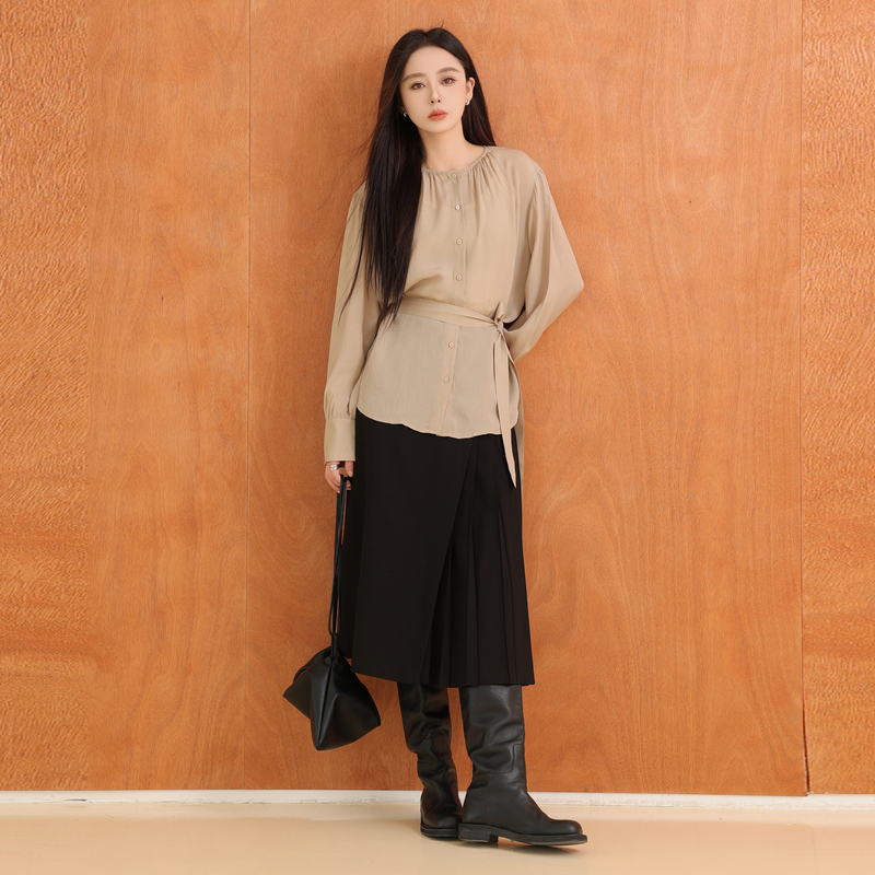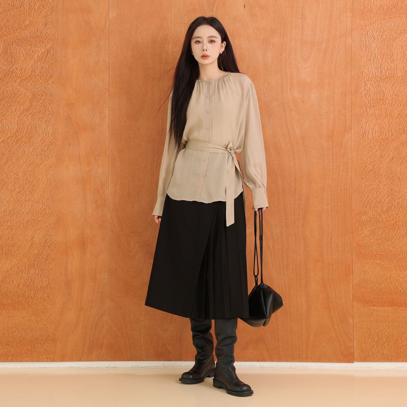 假两件 V领撞色宽松休闲长袖 Unvesno 老钱莱赛尔秋季 衬衫
