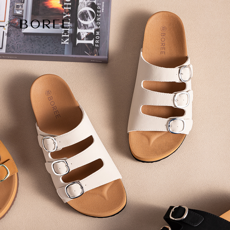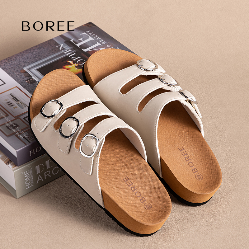 一字拖女外穿休闲凉拖鞋 新款 女2025年夏季 宝人吐司厚底勃肯拖鞋