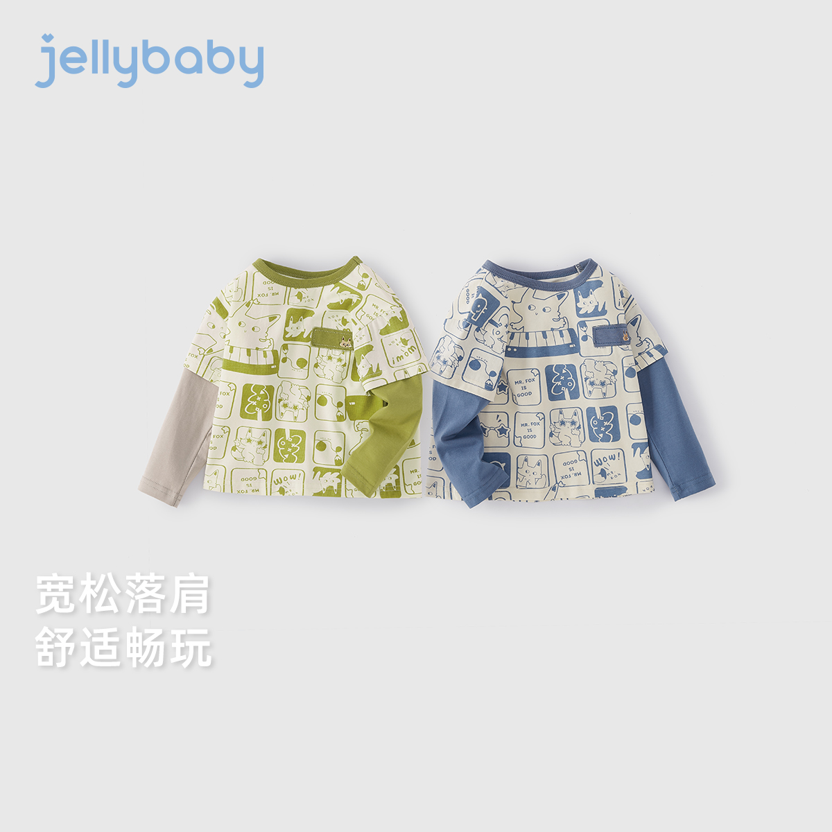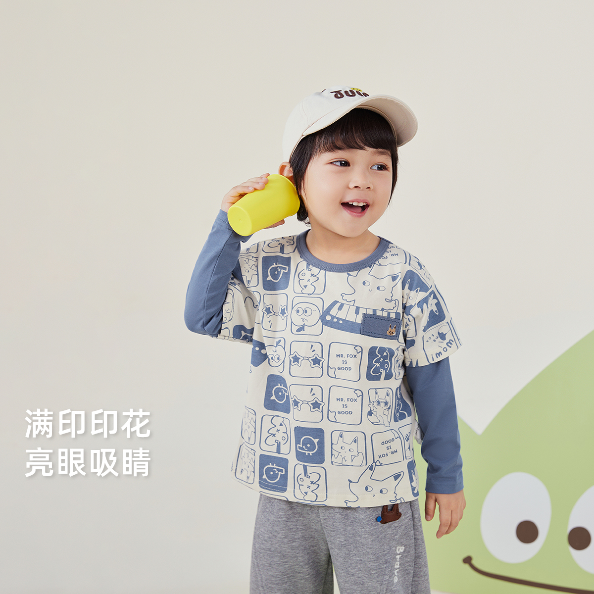 6岁宝宝秋季 t恤2025新款 男童长袖 时髦假两件儿童衣服男孩 7A抗菌