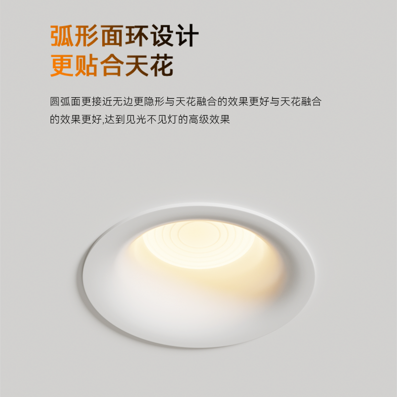 无边框筒灯嵌入式 深杯防眩奶油风隐形弧面射灯75mm客厅无主天花灯