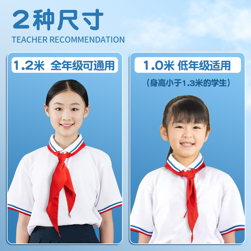 晨光红领巾小学生1m通用纯棉儿童标准棉布专用涤纶批发打结1.2米正品 3年级通用小号纯棉不掉色 大号薄红儿童1